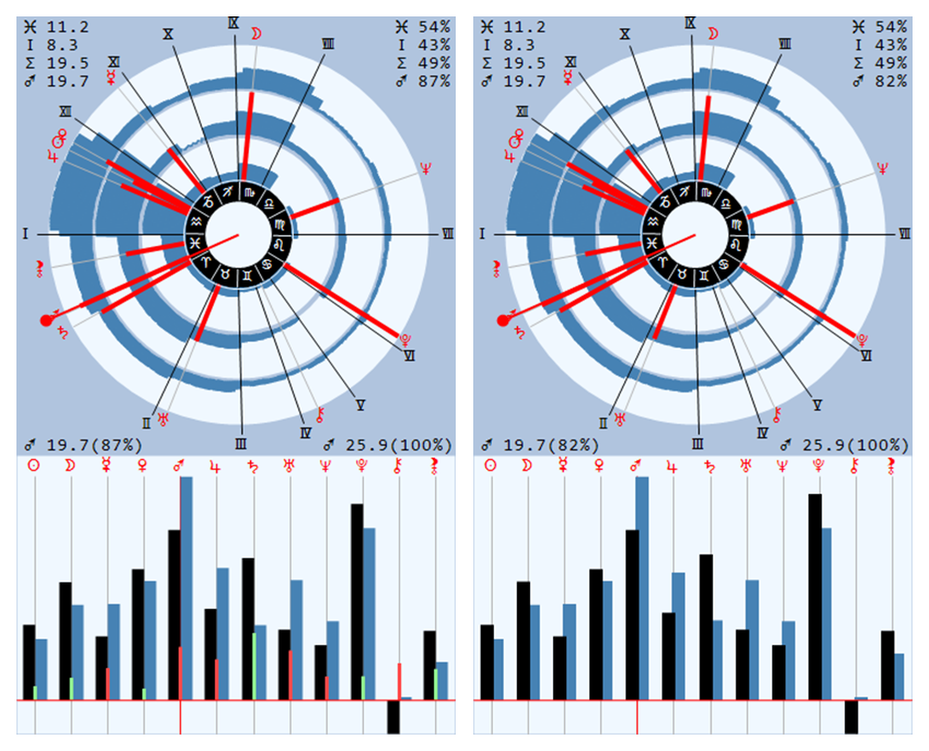 И такая механизация очень важна. Помимо того, что она позволяет оценить карты на предмет силы и слабости объектов (планеты, знаки, стихии и дома), она ещё и позволяет сравнить одних людей с другими на предмет соответствия какой-то профессии. И это очччччень важно!