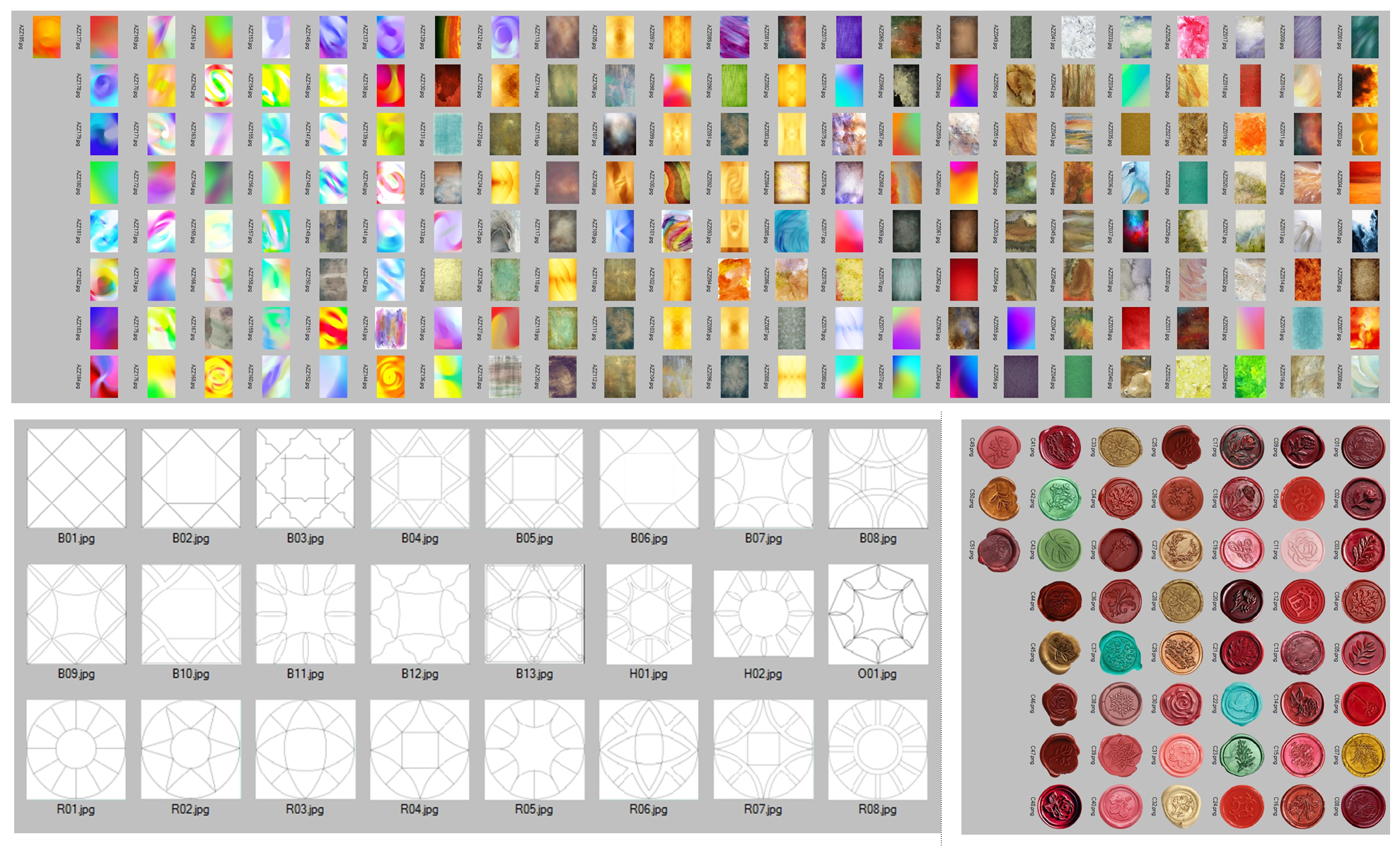- расширенный вариант (базовый вариант + расширенный набор данных ChartDecor++). В нём присутствует полный набор фоновых картинок, печатей и видов карт. Суммарно - более 2000 записей.